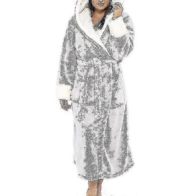 Sherpa Fleece Bathrobe Women Soft Dressing Gown Hooded Fluffy Towling Bath Robe_y 25-26s