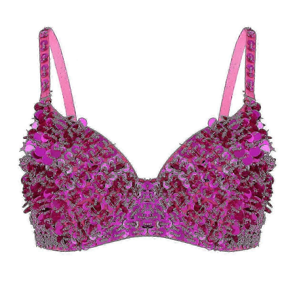 Womens Belly Dance Tops Sparkle Sequins Beading Padded Bra Top Belly Dancing Costumes Raves Party Pole Dance Club Wear-Good 25-26s