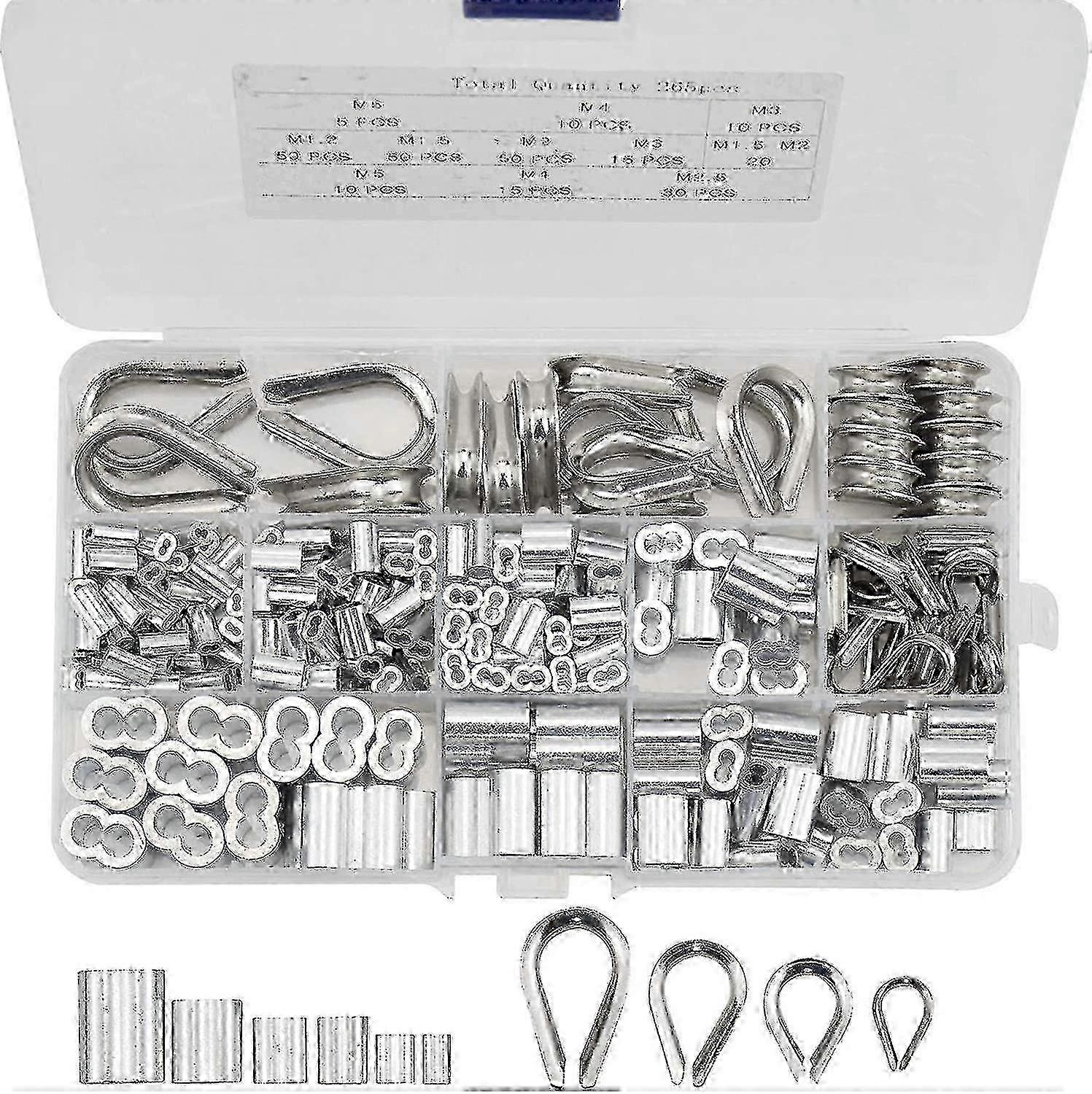 265pcs Crimp Sleeves + Stainless Steel Cable Lugs Aluminum Crimp Loop Sleeve For Cables Zekai 25-26