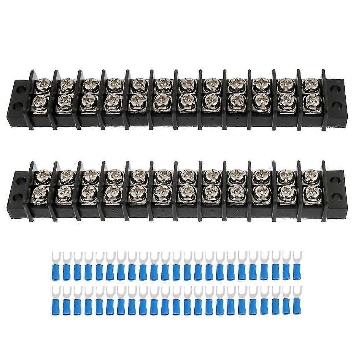 2PCS 12 Circuits 12 Positions Terminal Block 20-30A 200-450V Dual Row Screw Terminals Strip 25-26