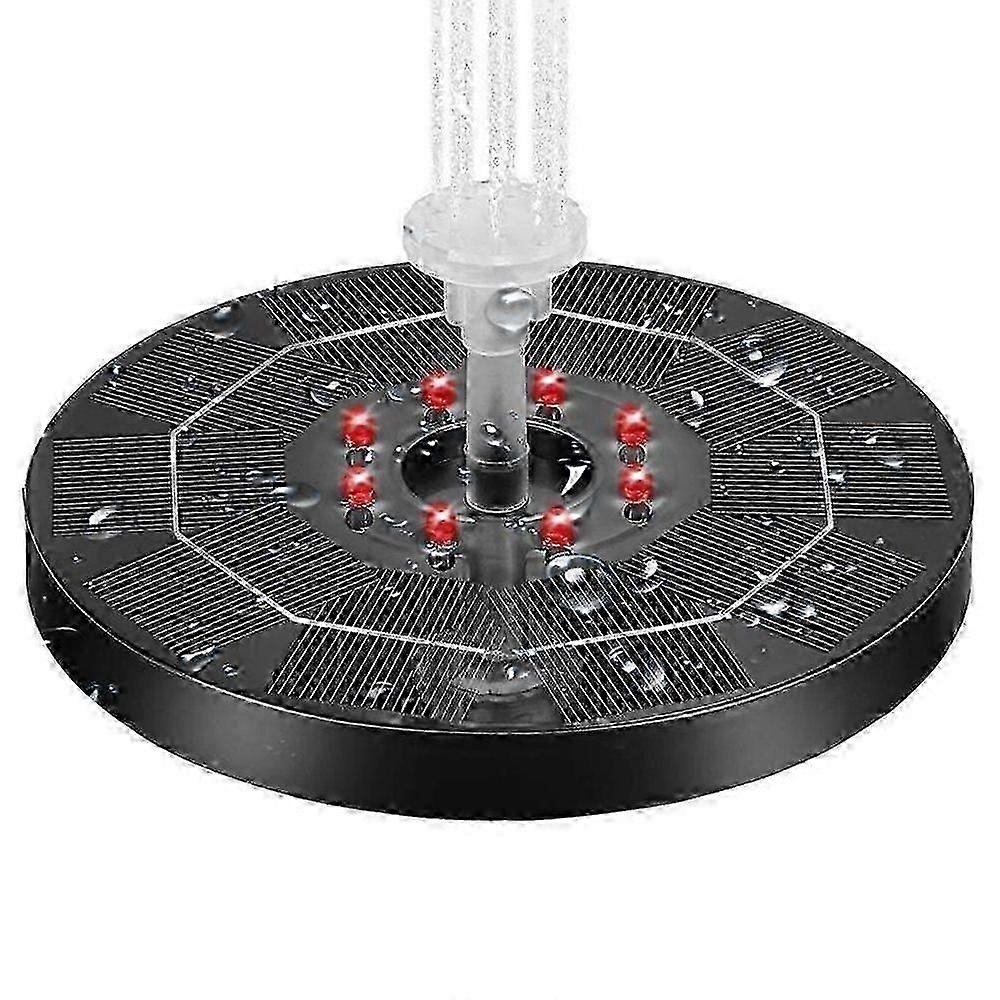 This floating fountain solar water pump is upgraded to 3W solar panels to keep the water pump working continuously even in low sunshine. Equipped with 8 LED lights solar fountain, 10 different colors, automatic color cycle adjustment makes your night more beautiful.With 3000mAh battery The height can be adjusted by changing the nozzles to prevent pool spillage.You can easily change the spray head. Our new water fountain has 2 modes, automatic mode, the solar fountain works during the day but no lights LED, works at night and LED lights. The water shortage protection function and the filter box allow the fountain to protect itself when there is a lack of water.The solar fountain charges during the day and stores energy while in use. With 8 RGB LED lights At night, the LED lights and the water fountain are good partners to improve the atmosphere. At night, the LED lights will turn on automatically while the solar fountain is working. Colorful LED solar fountains add more color to your garden at night . Various 2 Modes: Auto Mode: If you select Auto mode, the solar panel will start charging when there will be sunshine and the water fountain will appear.When you switch to night, the solar panel will stop charging and the solar fountain will still work on battery power, the LED lights will also start to work on battery power. "Night" mode: If you select "Night" mode, the solar panel will charge when the sun is shining, the water fountain will not appear, all the energy will be stored in the battery. When you switch to night mode, the solar panel will stop charging to charge, and the solar fountain will still work on battery power, the LED lights will also start to work on battery power. Day or night, you can listen to the fountain bring you the sound of water, let's have a great summer together! Note: Due to the light and screen setting difference, the item's color may be slightly different from the pictures. Please allow slight dimension difference due to different manual measurement.