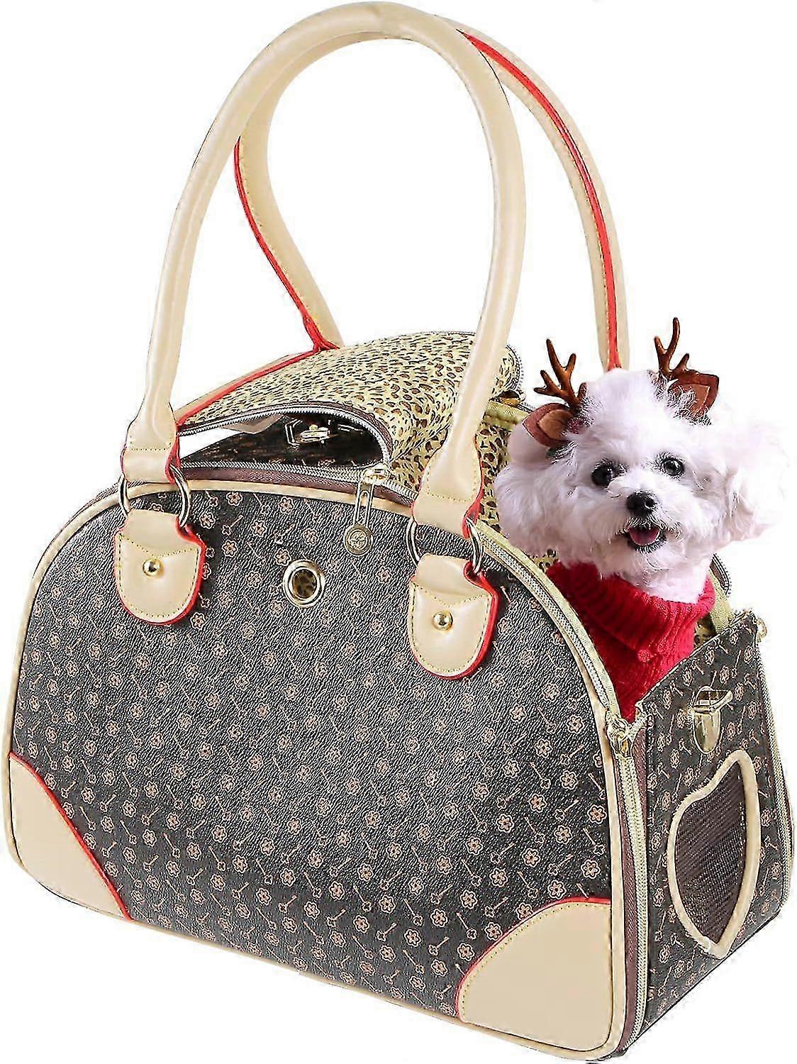 SBSGV Fashion Dog Carrier PU Leather Dog Handbag Dog Purse Cat Tote Bag Pet Cat Dog Hiking Bag, Brown, Large 25-26