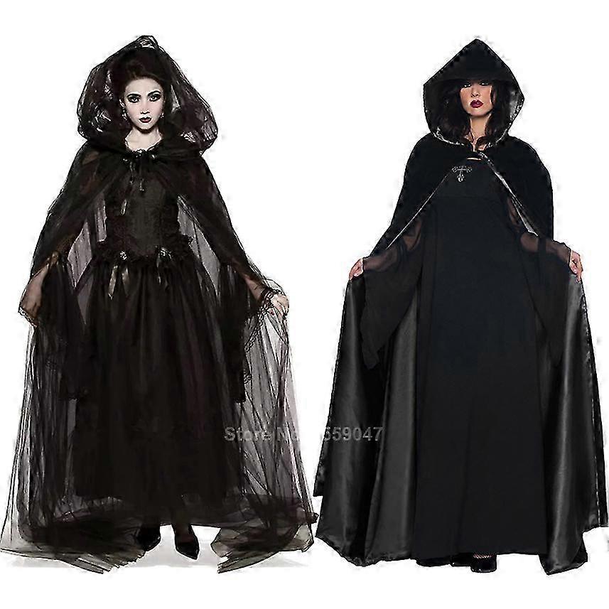 Scary Halloween Costumes for Women Ghost Bride Costume Black Dress Cloak Set Gothic Medieval Dress Vampire Devil Horror Suit 25-26