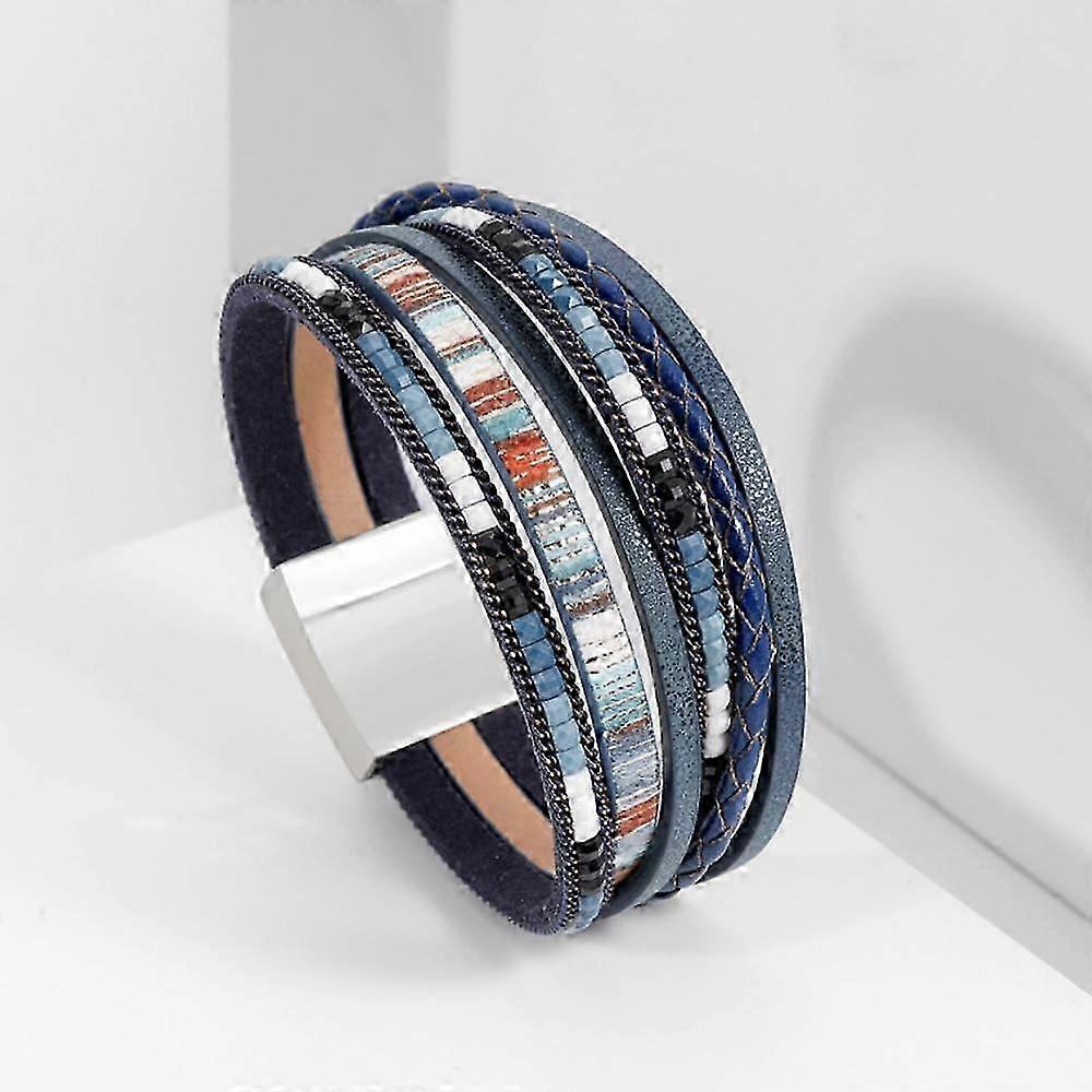 Boho Rice Bead Ladies Bracelet Leather Multilayer Leather Hand Braided Bracelet 25-26s