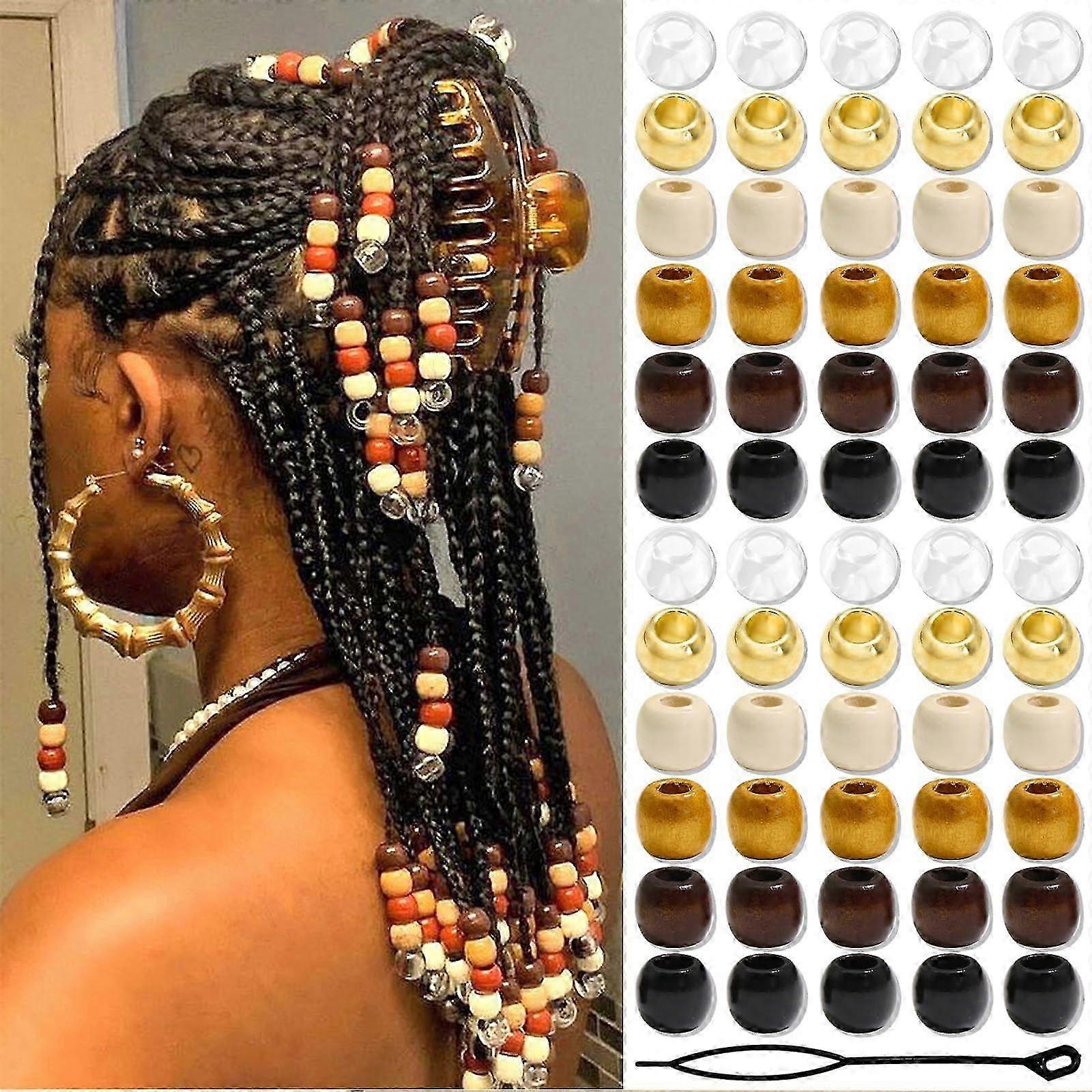 60 Wooden Hair Beads for Braids – 6 Colors, Hair Tubes for Braiding, Dreadlock Accessories, Hair Jewelry Making Kit, Braid Clips for Decorat