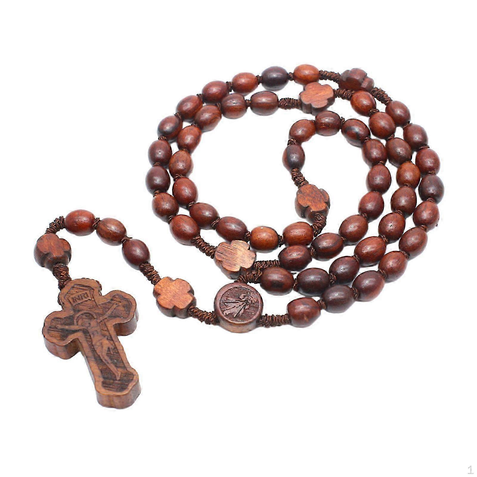 Rosary Cross Necklace Wood Beads Catholic Pendant Party Favor Durable Religious Jewelry Portable for 25-26s