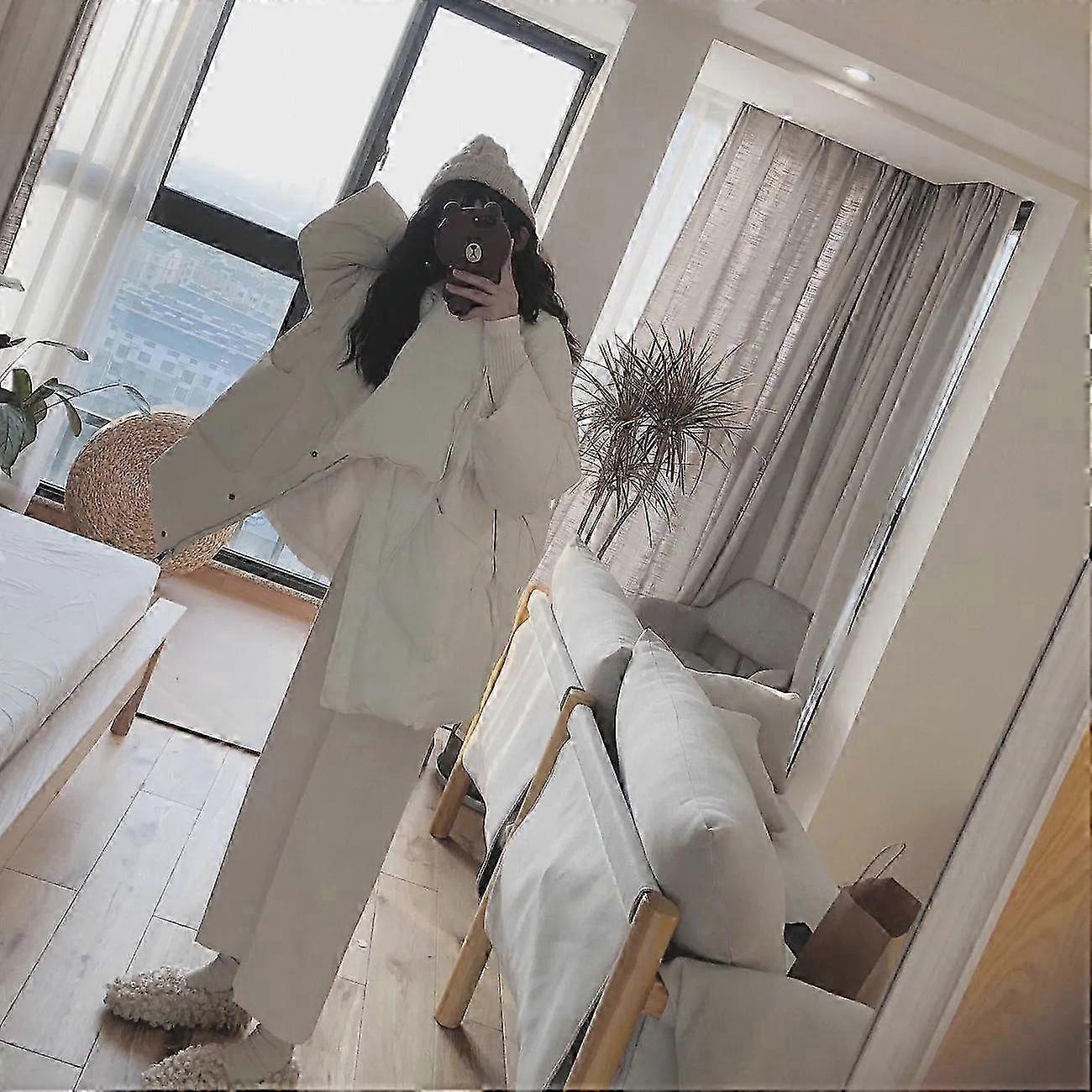 Women White Duck Down Coat Winter Fashion Female Scarf OverSize Jackets Round Neck Loose Thicken Parkas Warm Outwear 25-26s