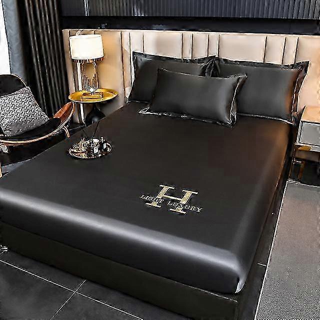 New Embroidery Printing Cool Fitted Sheet Four Seasons Universal Fitted Sheet Water -Washed Ice Silk Fitted Sheet For Home Hotel 25-26s