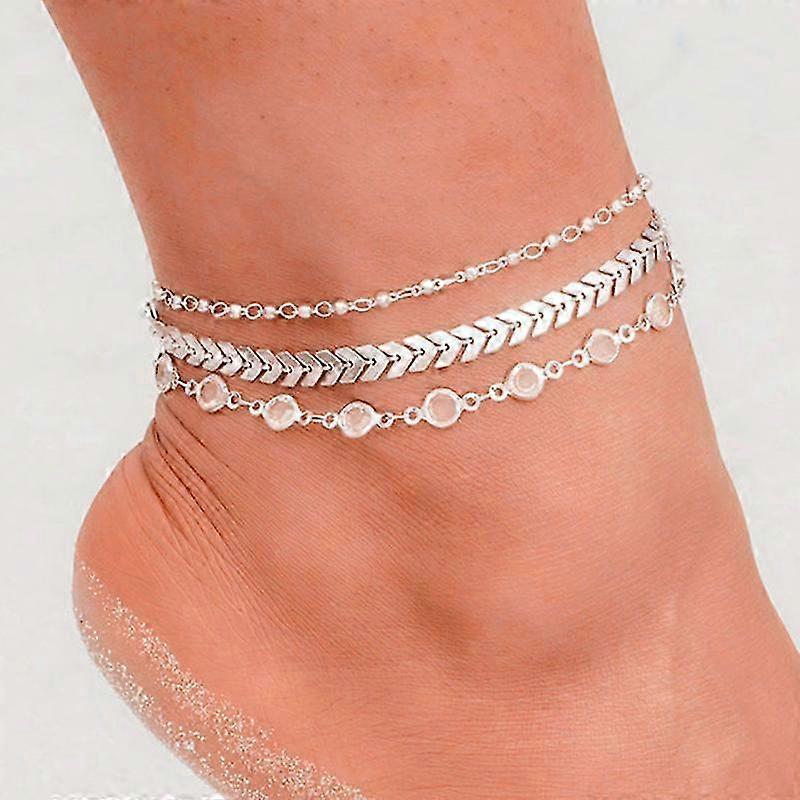 Crystal Sequin Anklet Set for Women, Vintage Statement Anklet Boho Style Jewellery 25-26