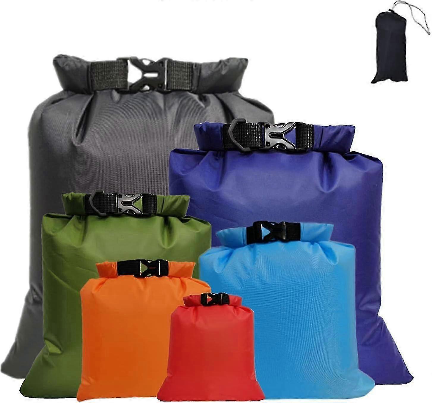 6 SizeOur waterproof bag with 6 different sizes: 1.5L/ 2.5L/ 3L/ 3.5L/ 5L/ 8L, meet your all needs to stay dry and still being able to easily carry WaterproofBoat dry bags is made of 190T polyester taffeta fabric, which is waterproof and tear-resistant, and has a smooth surface to prevent water from seeping through the seams Easy to UseThe dry sack waterproof bag has a nylon buckle, you only need to buckle it lightly to complete the seal. Strong buckle allowing you to keep your items stored securely and make it easy to get them Widely UsedDry bags waterproof set are suitable for home, travelling, backpacking, kayaking, swimming, fishing, camping, canoes, sailing, boating, rafting, hiking, snowboarding, etc. Dry sack waterproof bag perfect for almost any extreme adventure you imagine Easy To CarryThe waterproof bag is lightweight and can be folded into a small size for easy carrying. Drybag is good to store mobile phone, pad, map, camera or other personal belongings Note: Due to the light and screen setting difference, the item's color may be slightly different from the pictures. Please allow slight dimension difference due to different manual measurement.