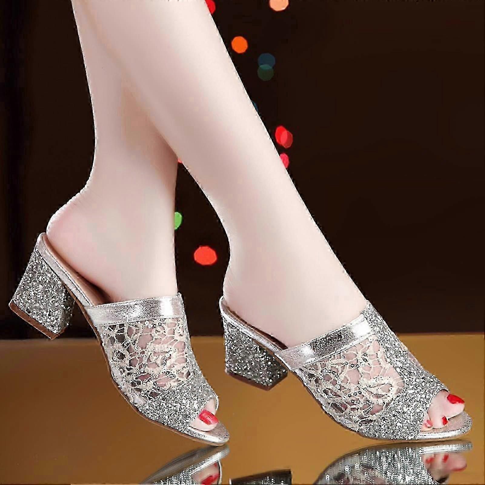 Womens Summer Chunky High Heels Without Grinding Feet Slippers Gift For Christmas Birthday New Year 25-26