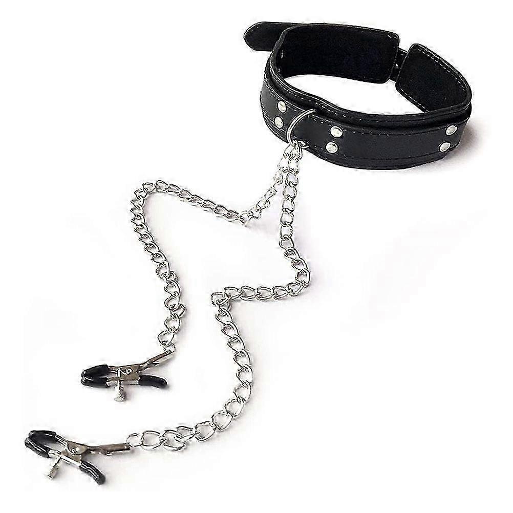 Nipple clamps adult nipple cuffs neck cuffs leather nipple clamps collar metal chain clip 25-26