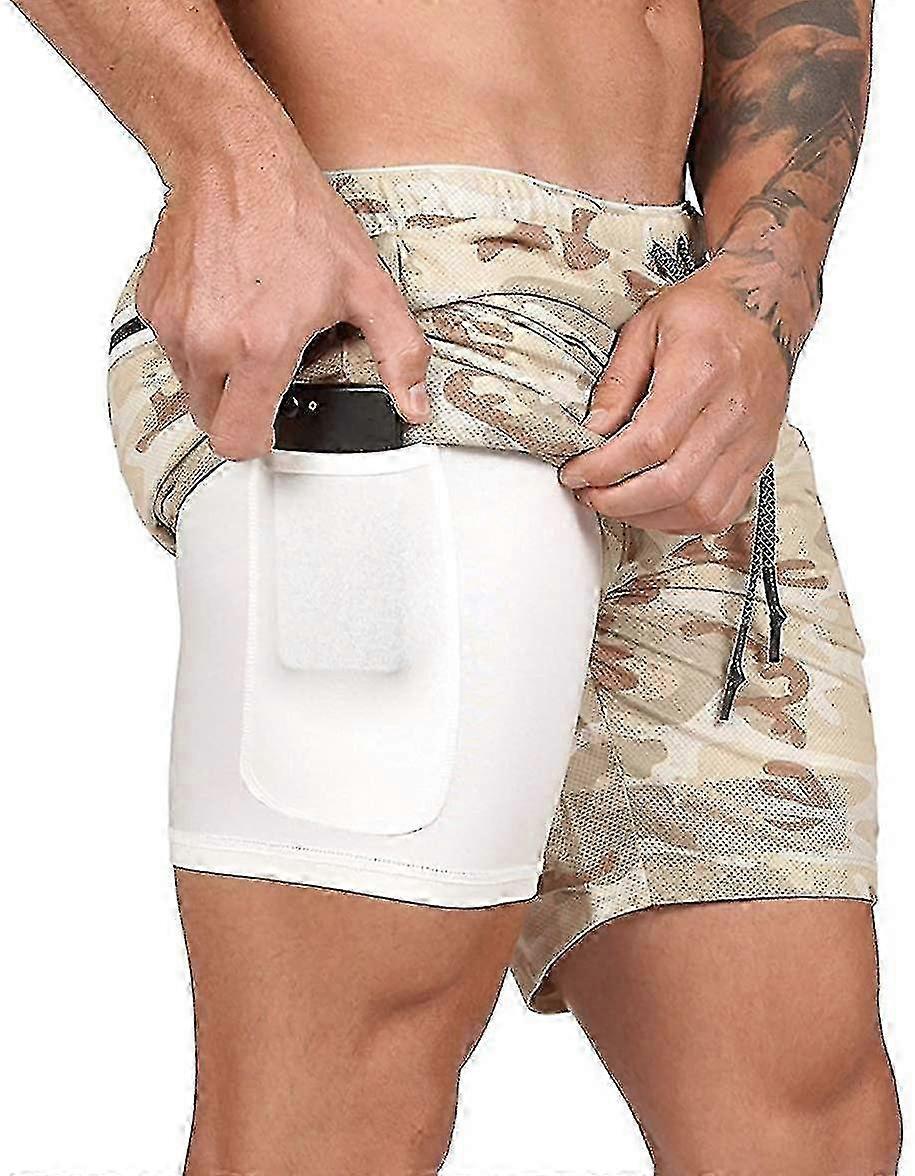 Mens 2 In 1 Running Sports Shorts Lightweight Gym Training Quick Dry 25-26