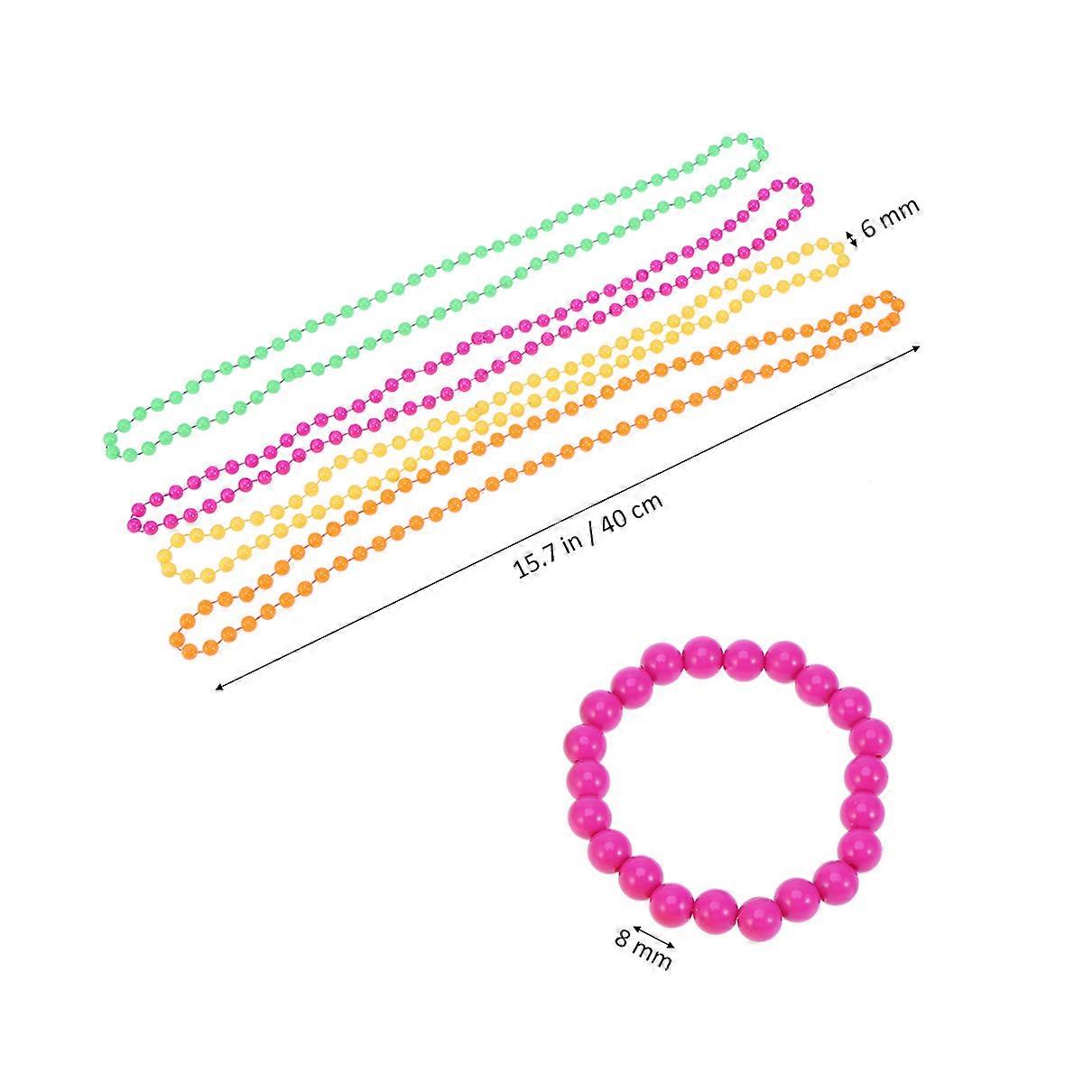 Neon Bead Necklace and Bracelet Set Assorted Color Plastic Retro 70s 80s Theme Party Accessories