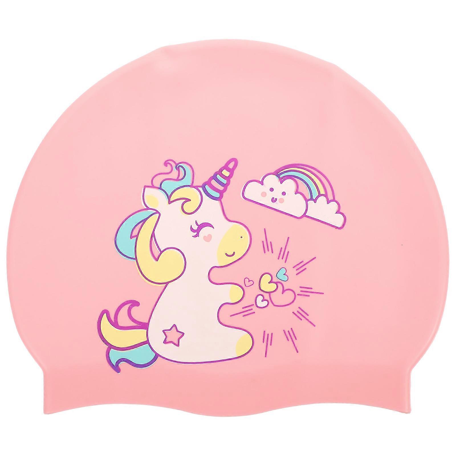 Cartoon Silicone Swim Cap for Kids Swim Cap with Ear Protection Pink