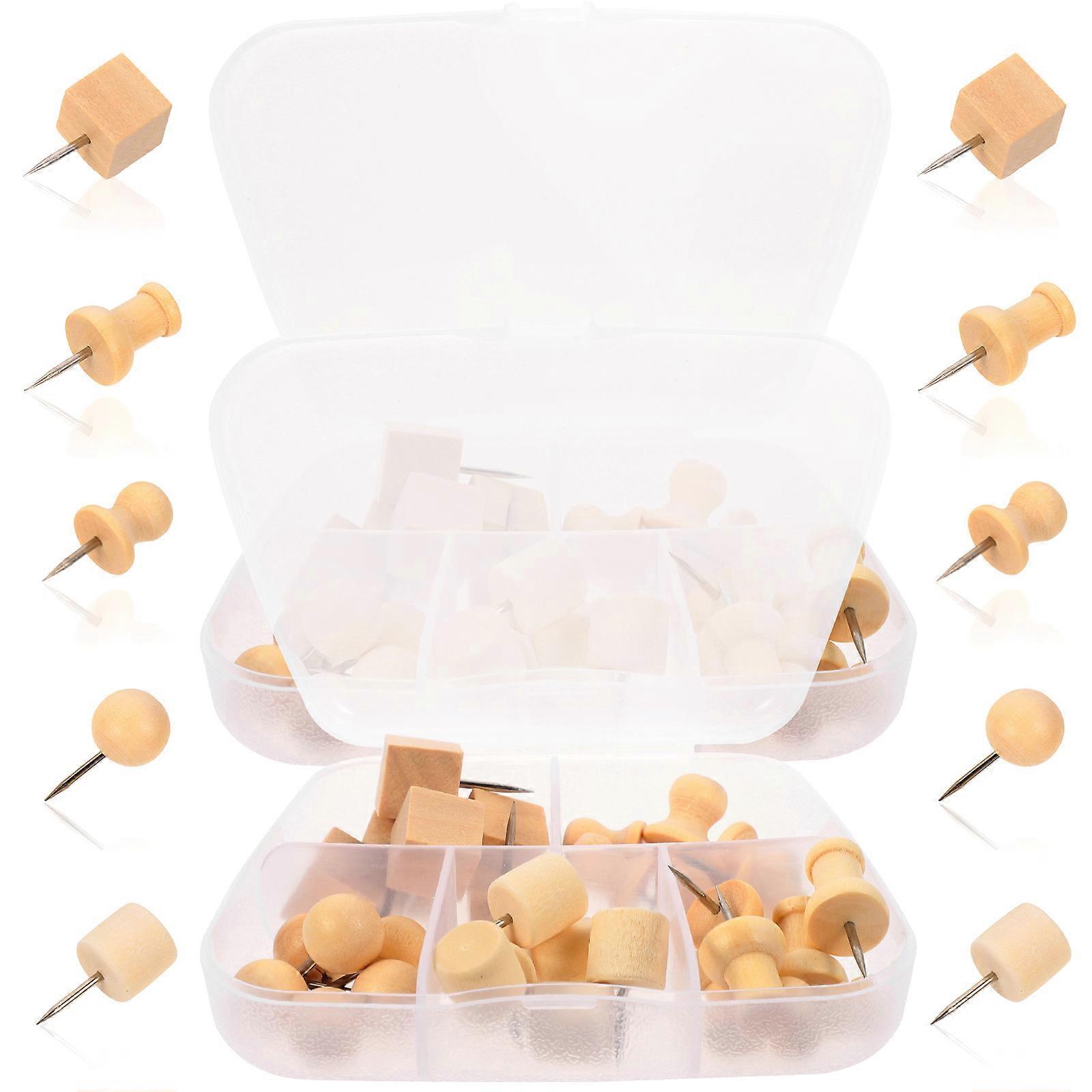 2 Box Wood Push Pins Map Tacks Marking Pins Wooden Thumb Tacks for Home Office Craft Projects