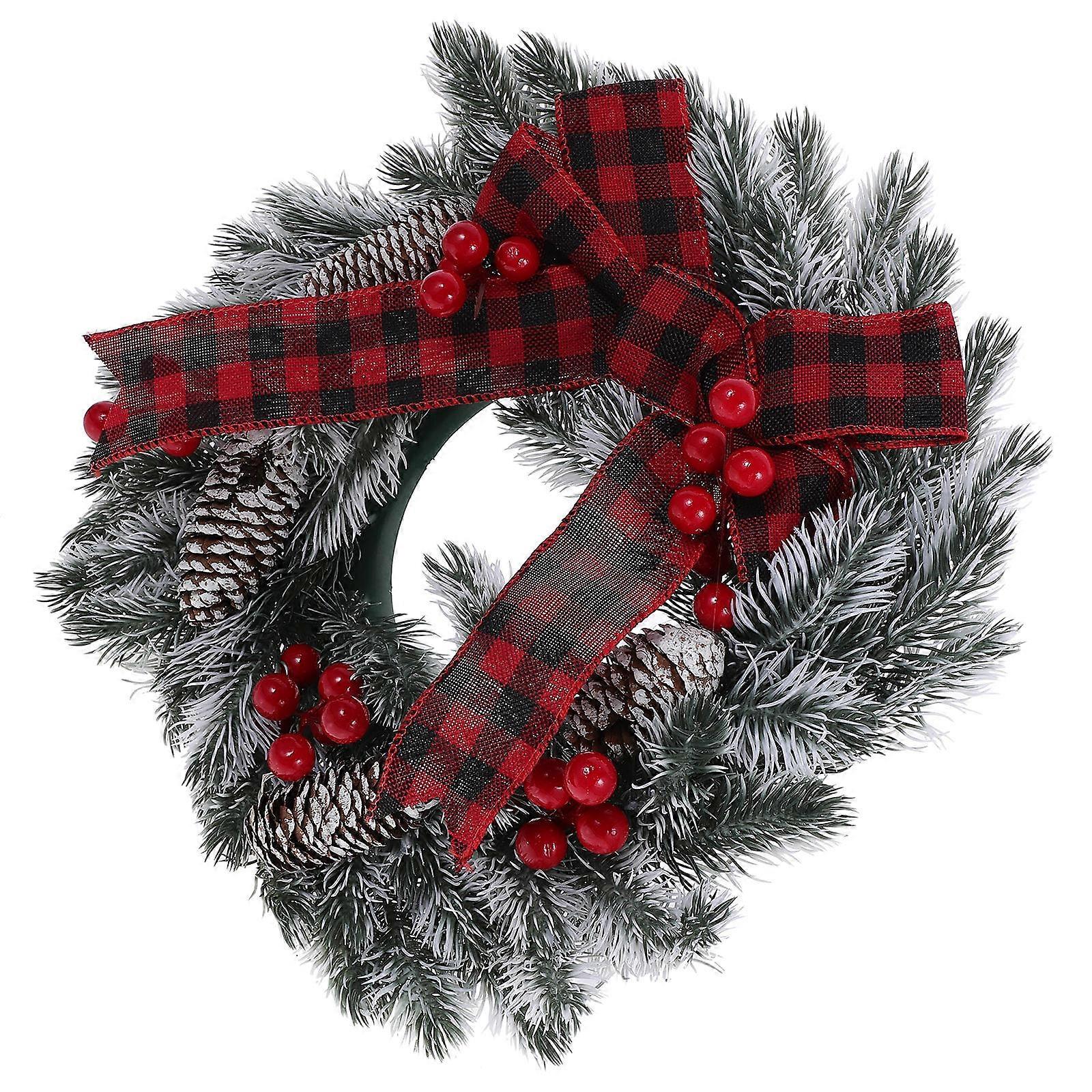 Christmas Wreath for Front Door with Bow Decoration Multi Color Plastic and Fabric 12 inch