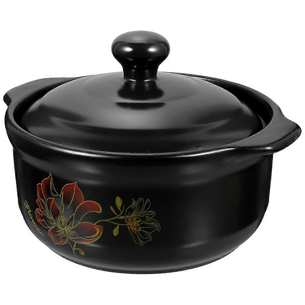 Ceramic Cooking Pot with Lid for Soup Stewing Household Black Casserole