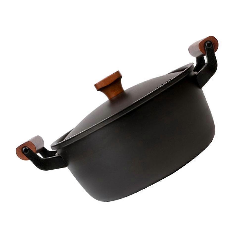 Black Nonstick Household Iron Pot for Home Use with Wooden Handle Convenient Cooking 1Pc