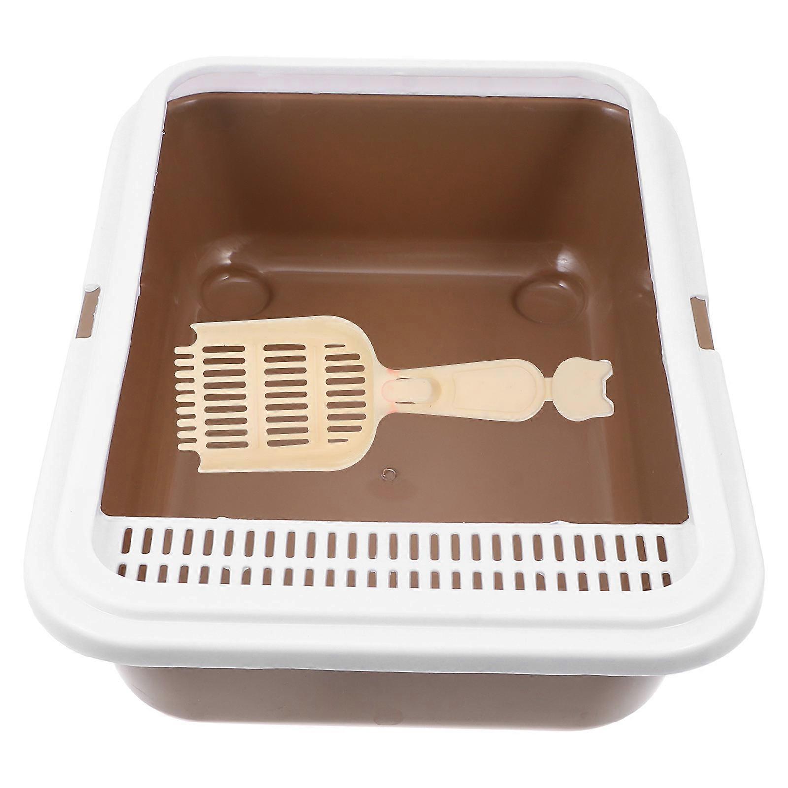 Cat Litter Box Anti-Splash Tray For Pet Cats With Sand Scoop Coffee Color 1Set Practical Use