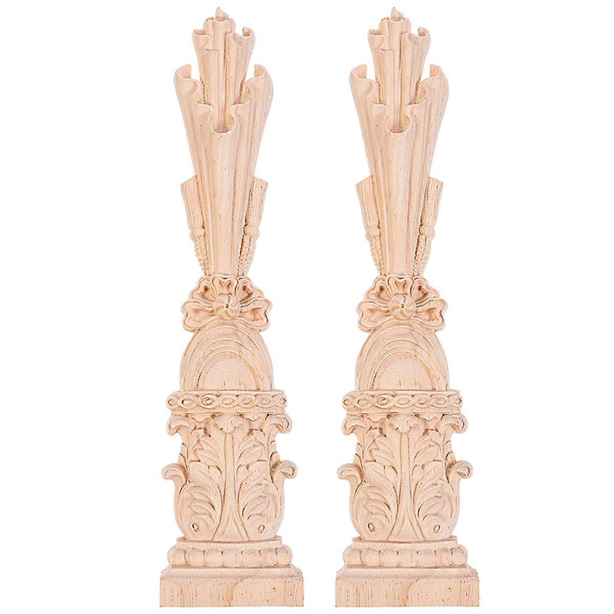 2pcs Unpainted Wooden Roman Column Applique for Furniture Decor Carved Design for Cabinets and Walls