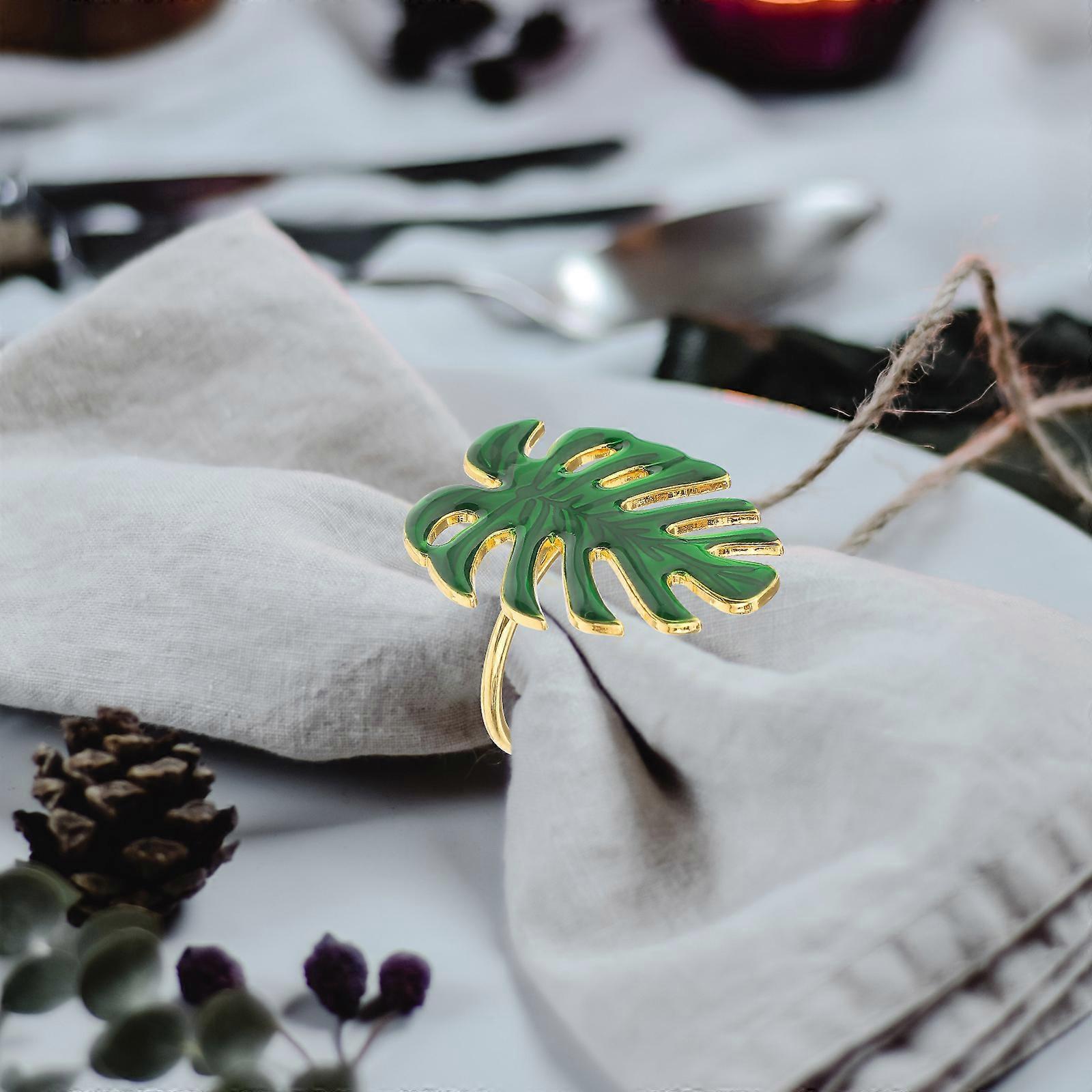 Green Metal Turtle Leaf Napkin Rings for Table Decor Realistic Design Fits Various Scenes 4pcs