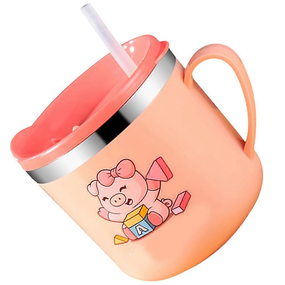 Baby Feeding Cup Round Stainless Steel Water Cup With Straw Toddler Use Pink 8.5x8cm 250ml Heat-Insulation 1Pack