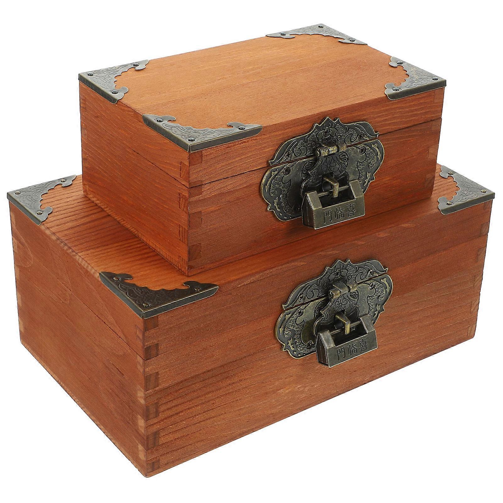 2pcs Wooden Jewelry Boxes for Home Light Brown Synthetic Material Storage Container 7x4.5x3 Inches