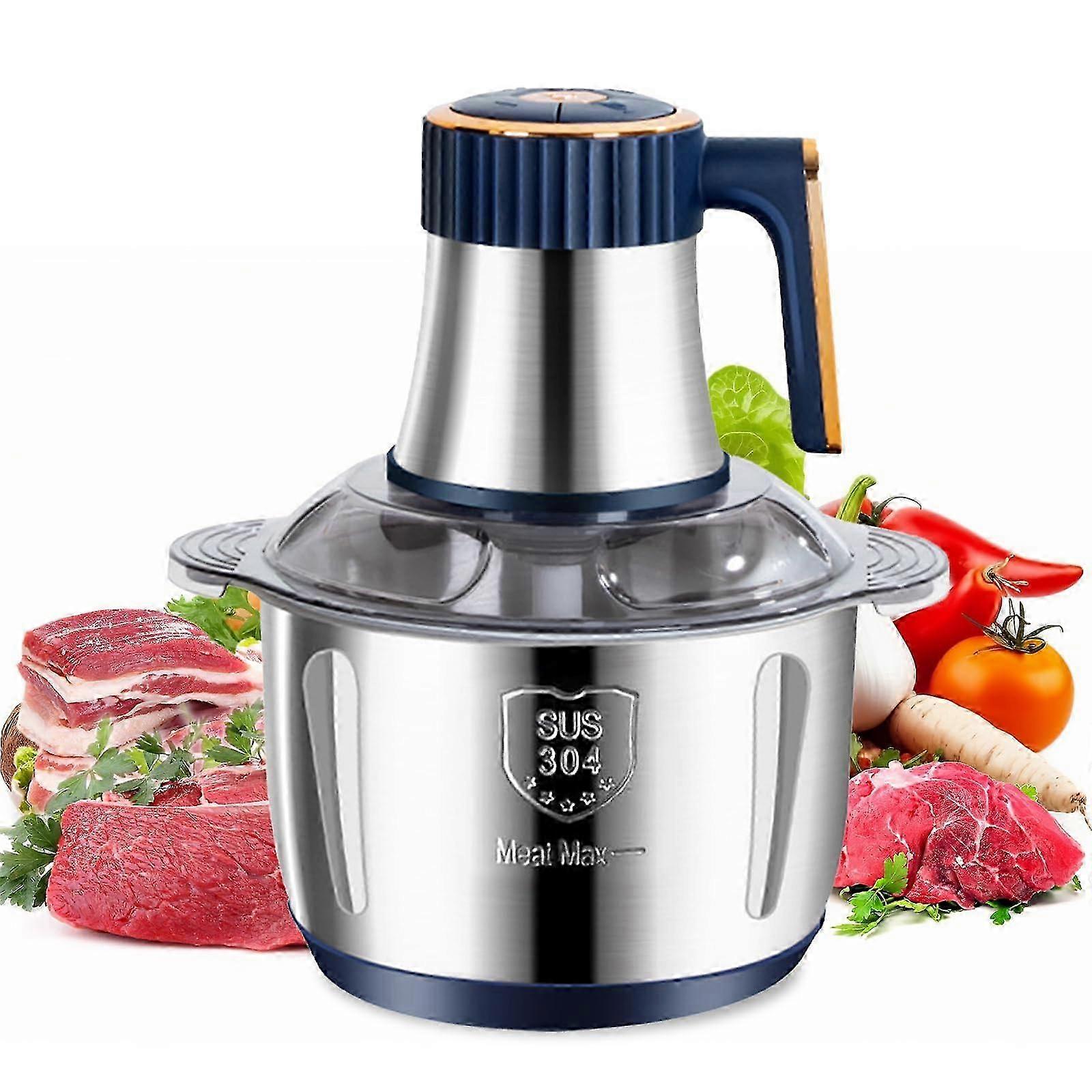 5L Electric Meat Grinder 500W Stainless Steel Food Processor with 6 Blades, 5 Speed Vegetable Slicer and Chopper, Blue 25-26s