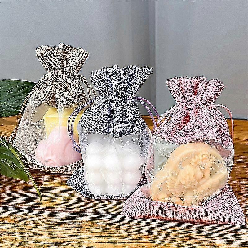 Adjustable Bags Imitated linen Yarn Small Visible Window Drawstring Pockets Candies Gifts Lovers Anniversary Wedding Festivals 25-26s