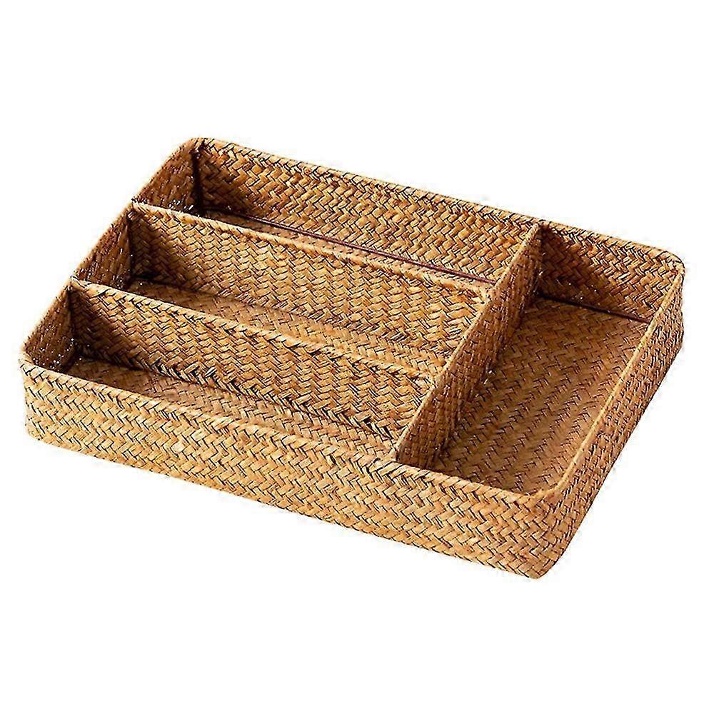 JUNWELL Organizer Flatware Drawer Basket Silverware Cutlery Holdercaddy Tray Rattan Kitchen Utensil Woven Storage Fork Wicker 25-26s