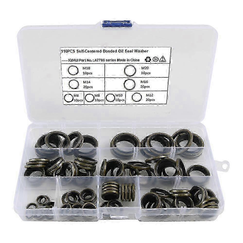 Type A A7786 110Pcs M6 to M20 Self-Centered Bonded Oil Seal Washer Set 25-26s
