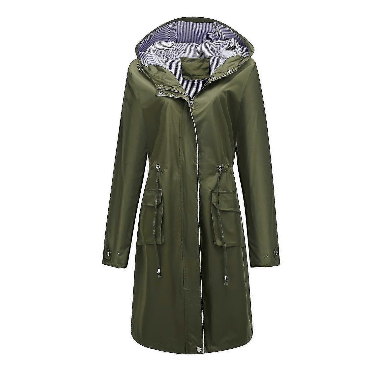 Women's Windcheaters Hooded Long Loose Coat with Side Pocket Outdoor Light Rain Windbreaker Hiking Jacket 25-26s