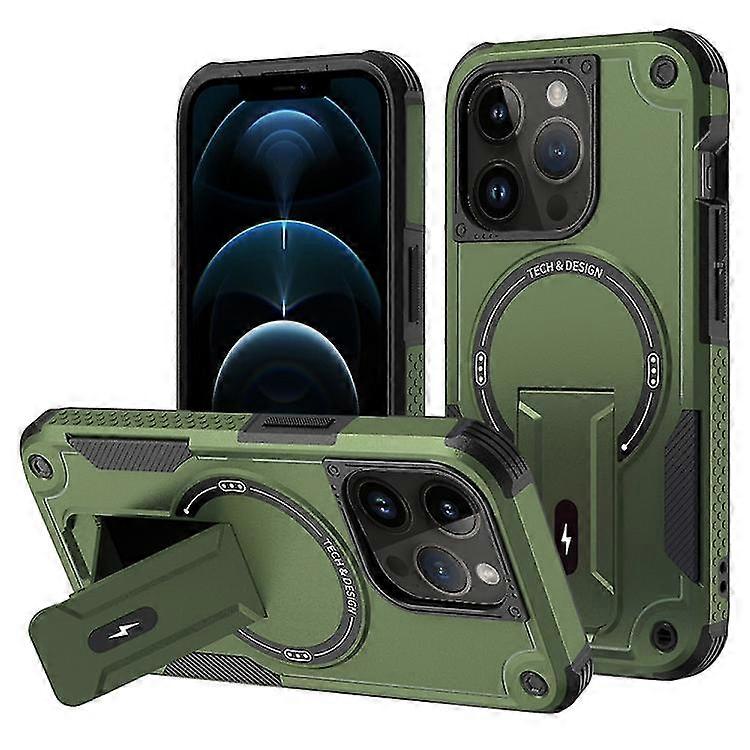 For iPhone 15 Pro Max MagSafe Holder Armor PC Hybrid TPU Phone Case 25-26