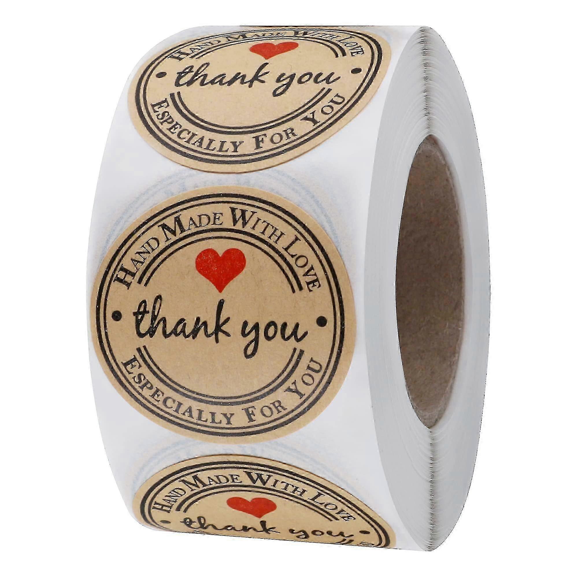 1inch Round Kraft Thank You Hand Made With Love Stickers 500 Handmade Labels Per Roll 25-26