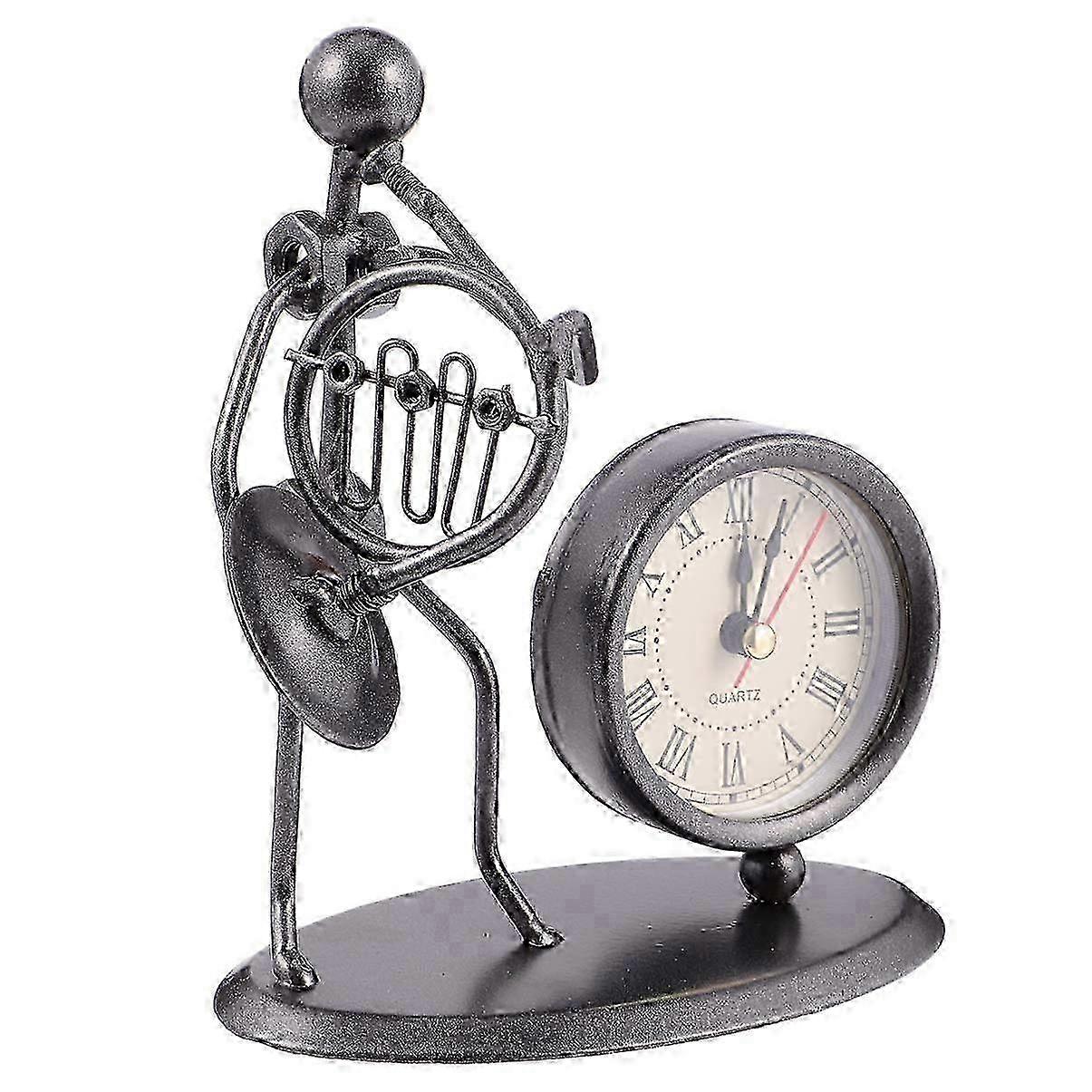 Vintage French Horn Desk Clock - Retro Bicycle & Musician Figurine Table Ornament for Home 25-26