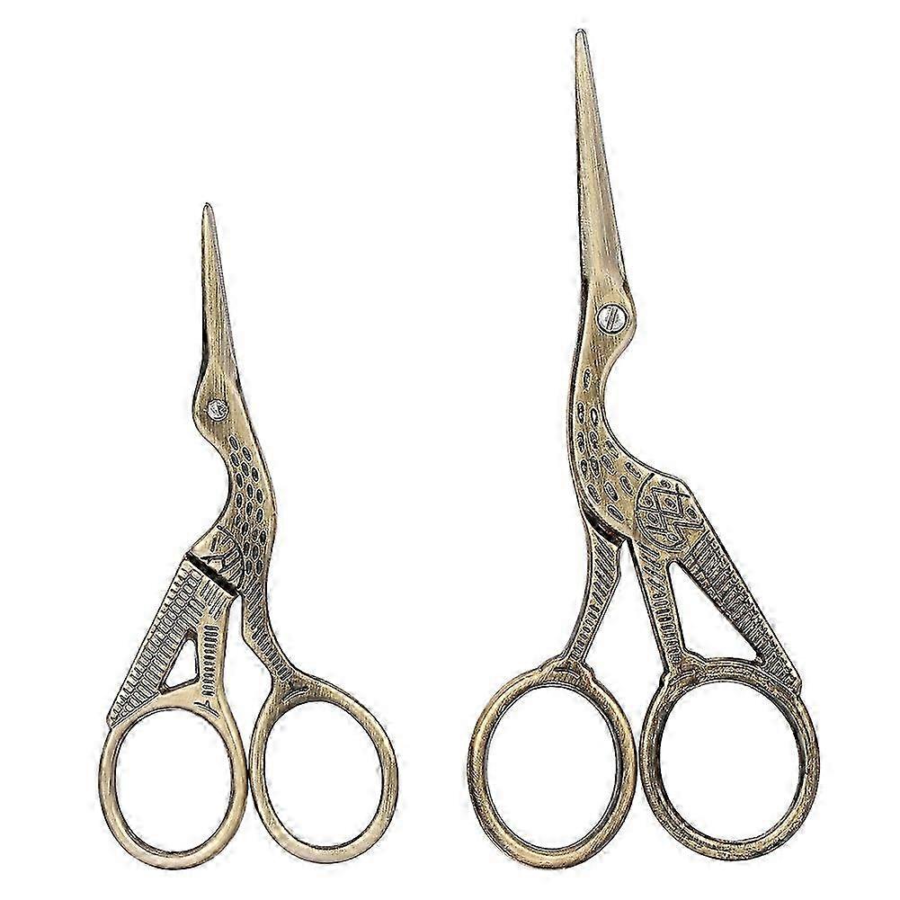 Retro Bronze Stainless Steel Carving Crane Shape Two Sizes Sewing Scissors 25-26