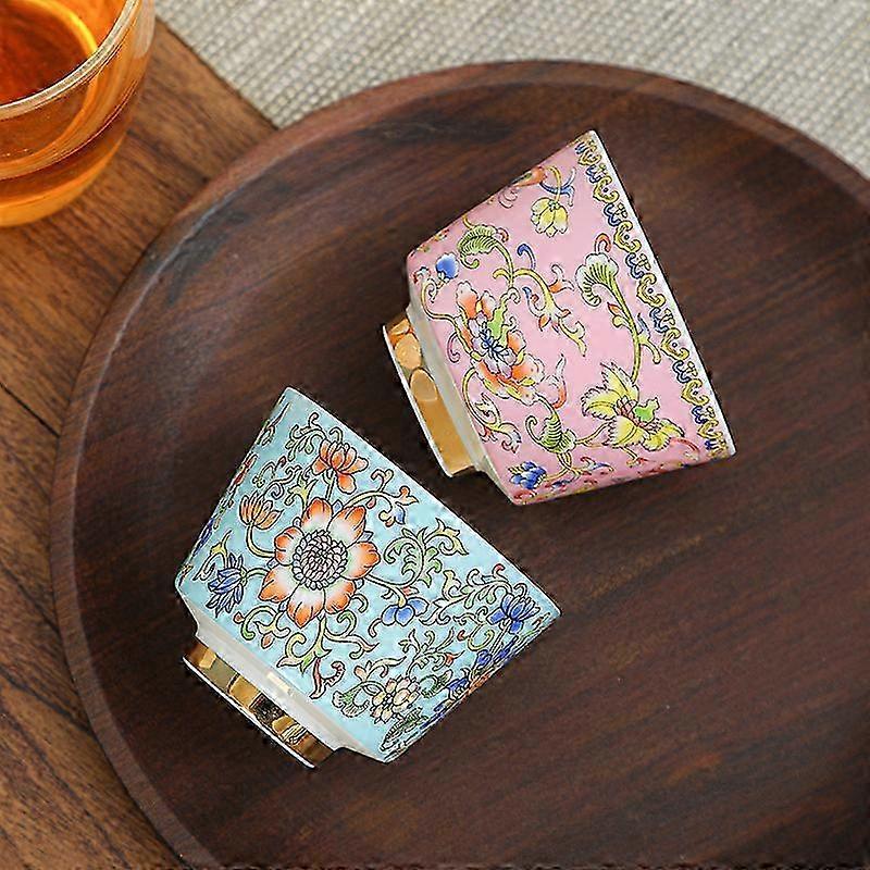Dehua Enamel Color Tea Set – Couple’s Tea Bowls, Ceramic Kung Fu Tea Cups 25-26