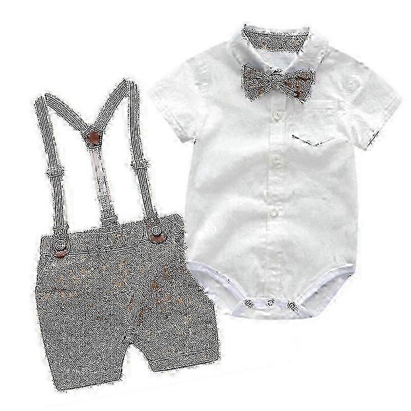 Baby Boys Gentleman Outfits Suits Bowtie Romper Suspenders Shorts Tuxedo Outfit jm 25-26s