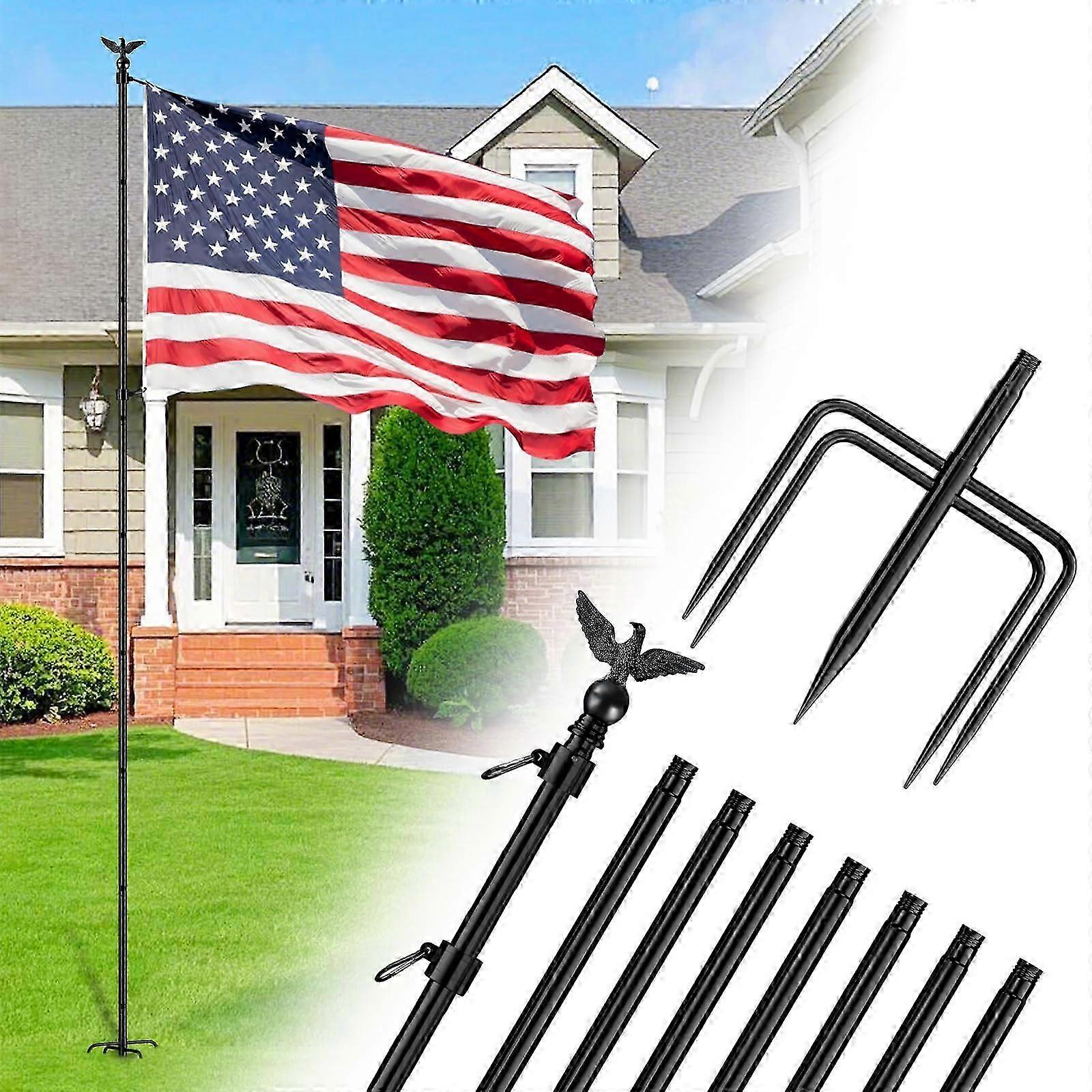 10 FT Flag Pole Kit in Ground with 5 Pronges Base, Holder with Metal Eagle Topper 25-26
