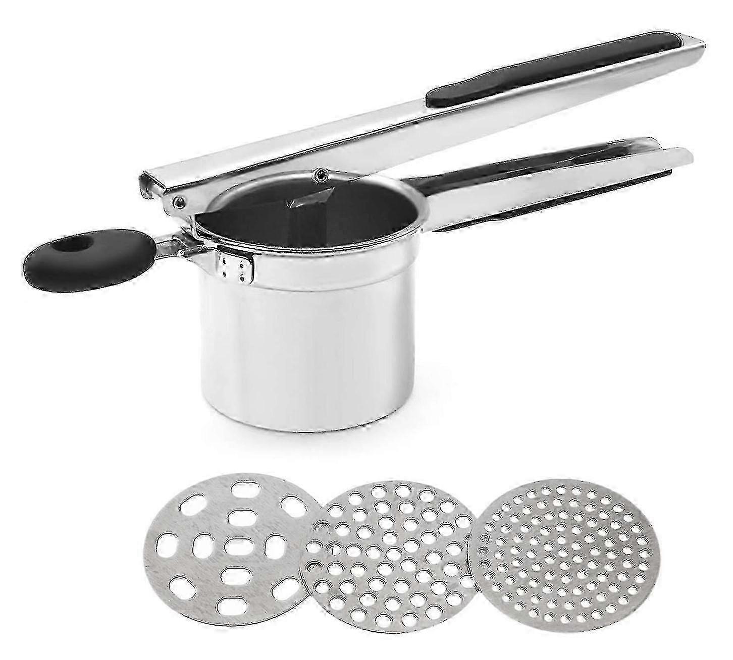 Stainless Steel Potato Press with 3 Perforated Discs - Ideal for European Kitchens 25-26