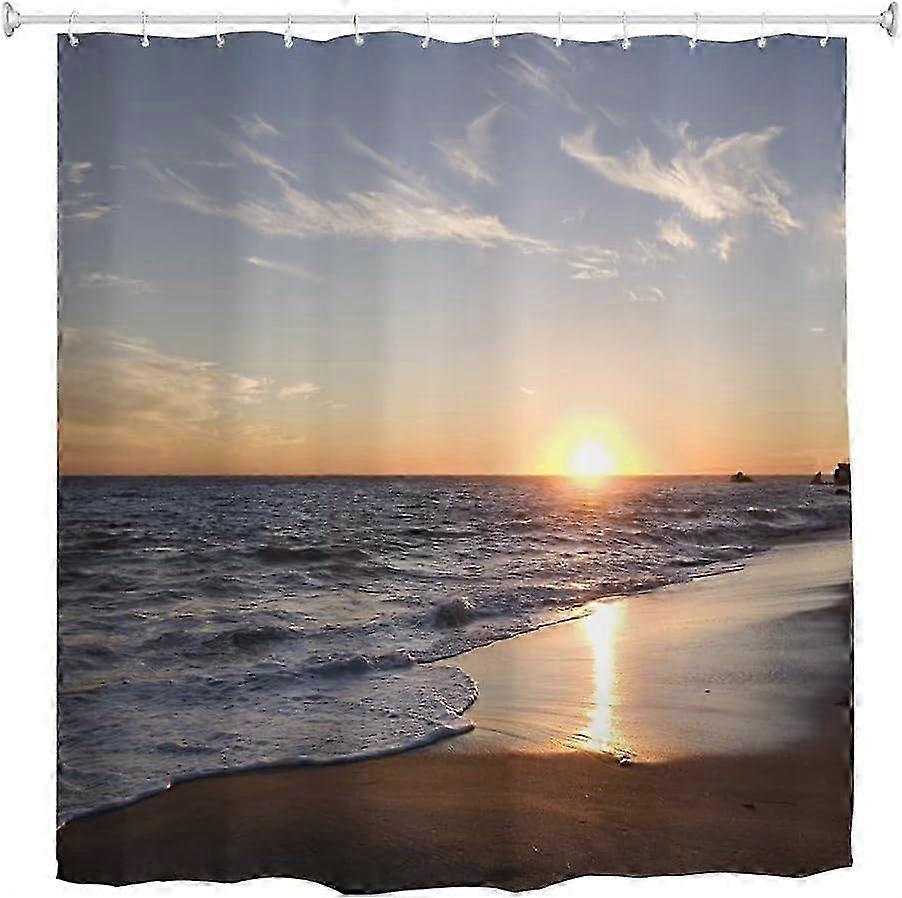 Goodbath Beach Shower Curtain, Ocean Beach Sunset Theme Waterproof Fabric Bathro 25-26