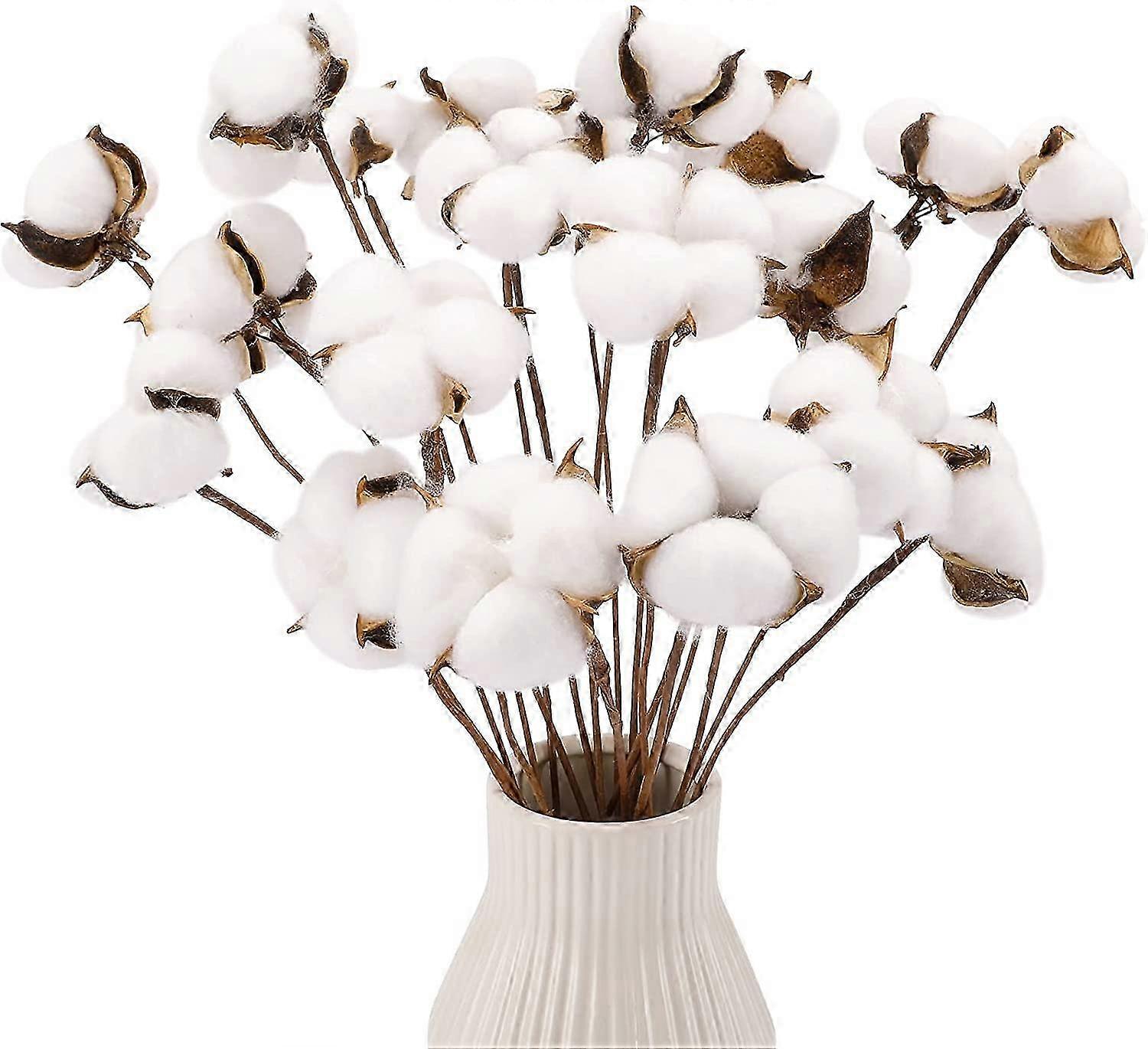20Pcs Cotton Stems, Fake Cotton Flowers Dried Cotton Picks Stalks Plants, Farmhouse Decorations For Vase Home Decor 25-26s
