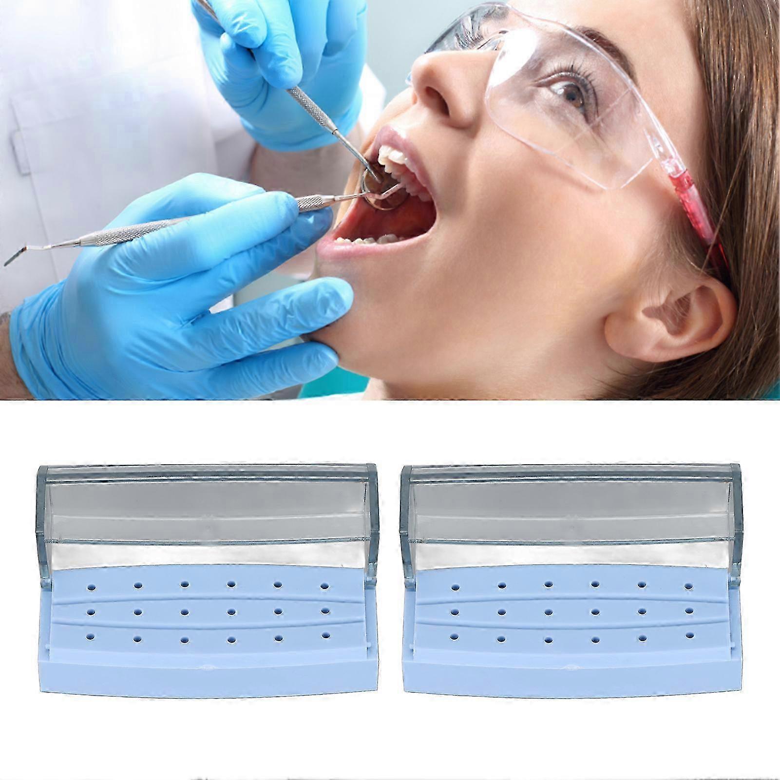 2pcs Dental Bur Holder Box 18 Holes Bur Cleaning Autoclavable Case Organizer for Dentist Laboratory Blue 25-26