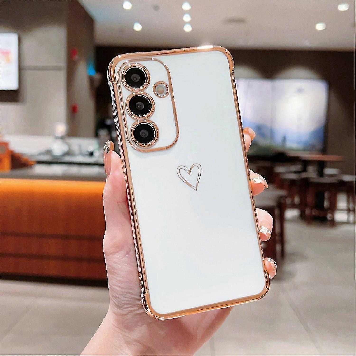 For Samsung Galaxy S24 FE Case Love Heart Pattern TPU Phone Cover Electroplating Edge-Ivory White 26s