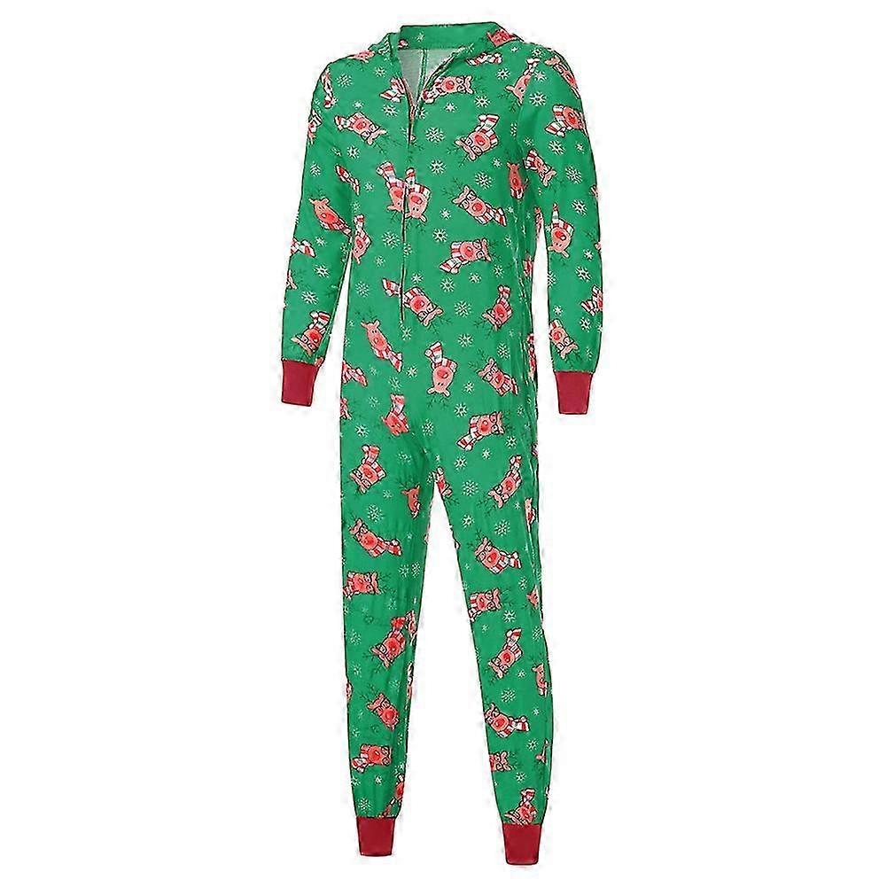 25-26 New Matching Family Christmas Siamese Pajamas Sets Deer Head Embroidery Hooded