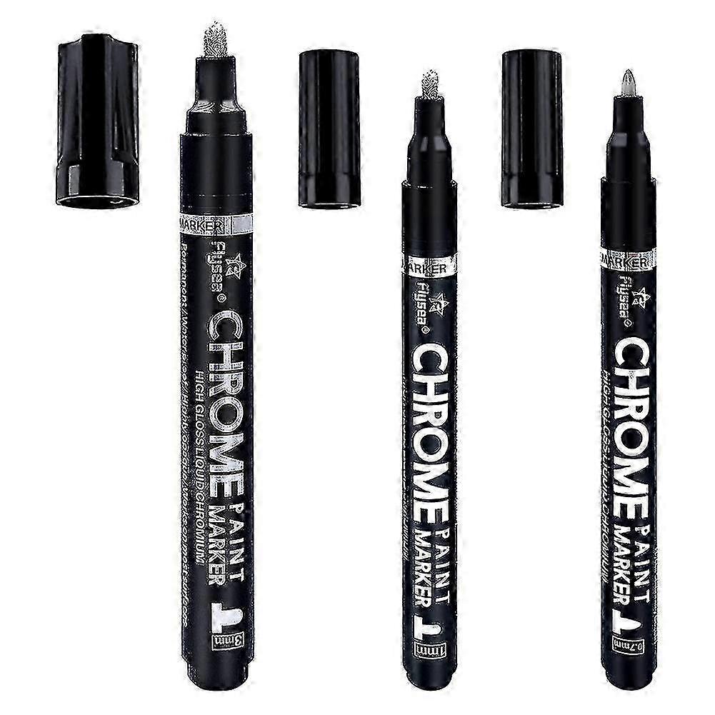 25-26 3pcs Silver Liquid Mirror Chrome Markers, Permanent Reflective Mirror Paint Pens Set - 0.7mm,1mm, 3mm