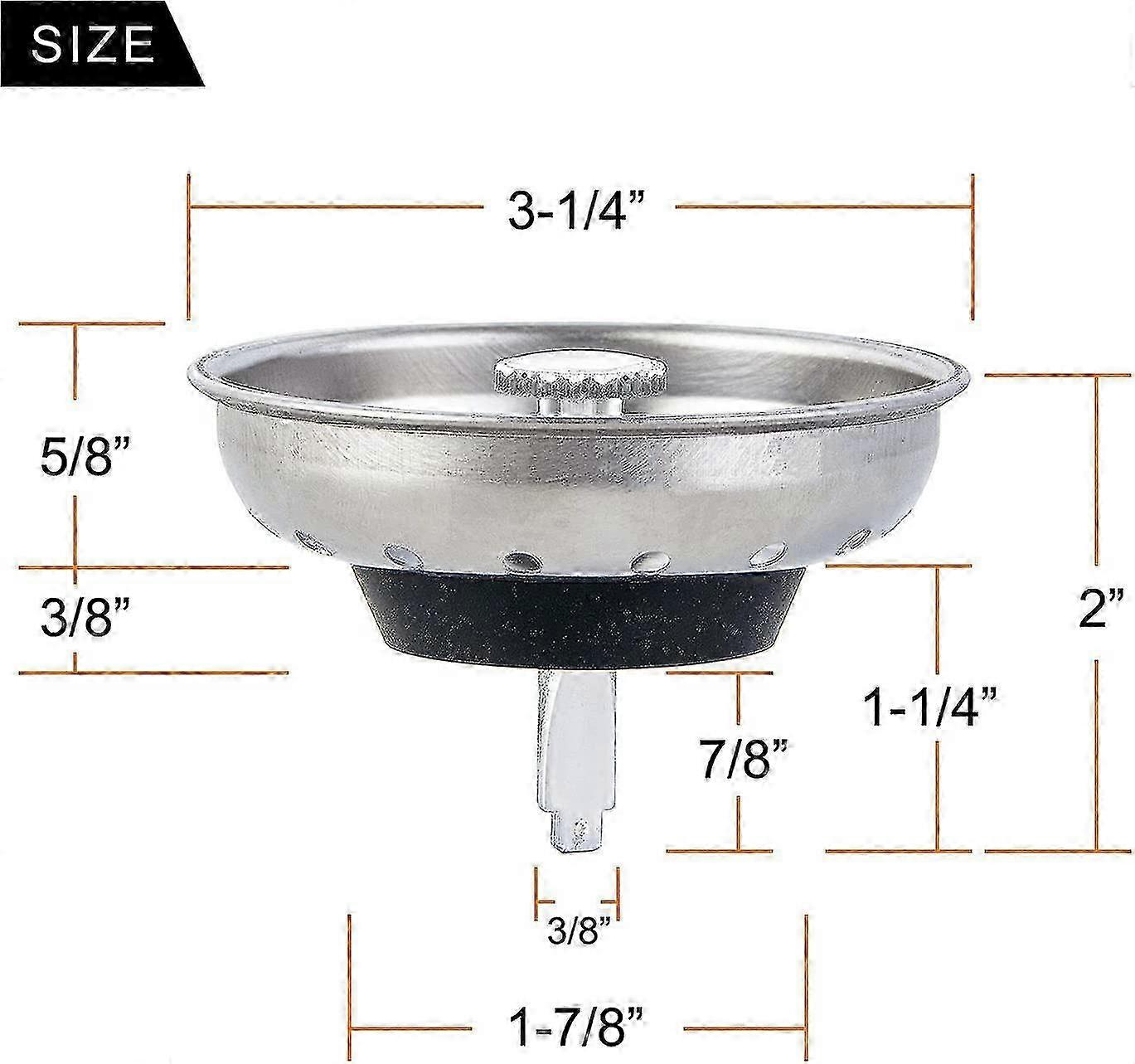 25-26 2 Pcs Kitchen Sink Strainer And Stopper Combo Basket Replacement For Standard 3-1/2 Inch Drain,stainless Steel Basket With Rubber Stop