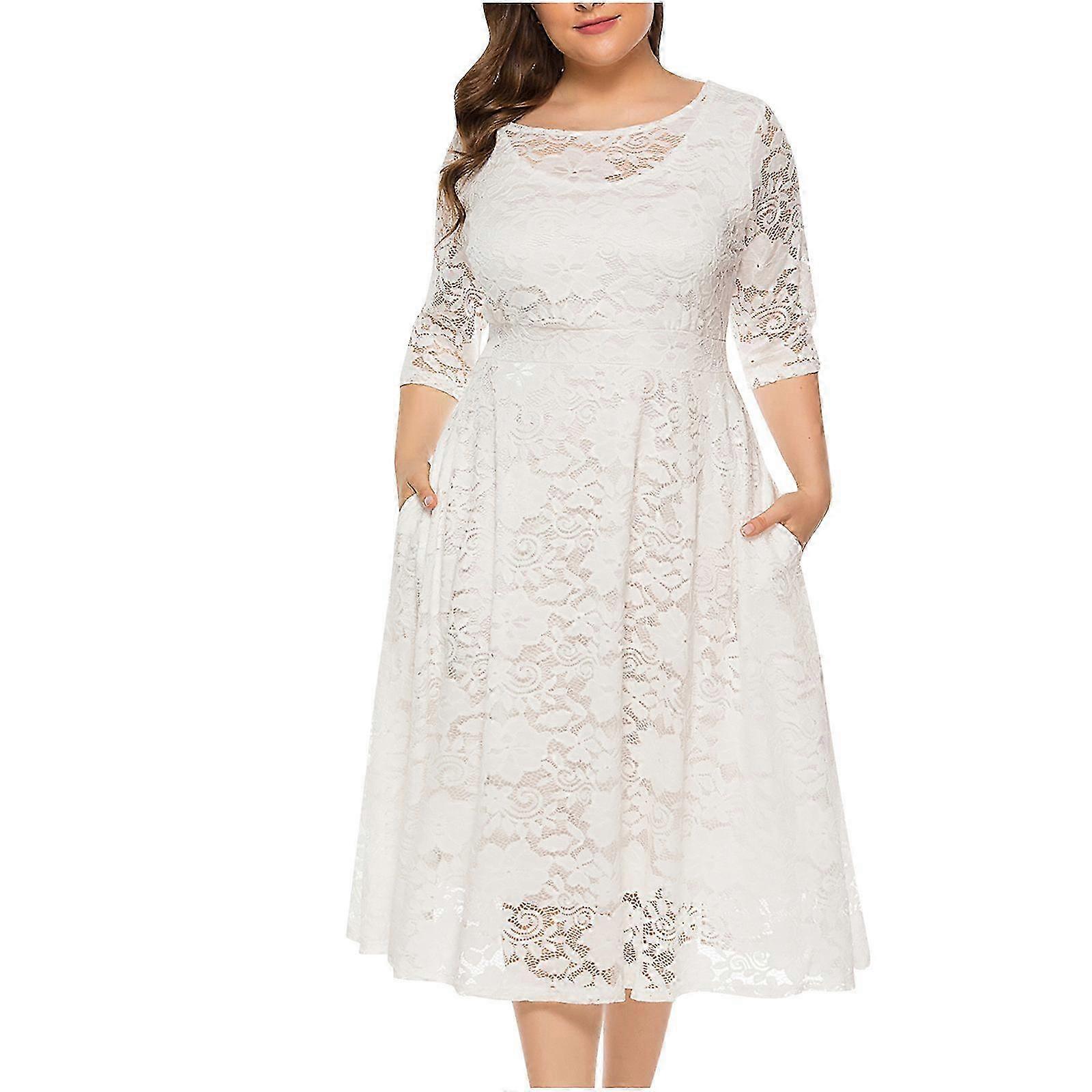 Plus Size Women's Fashion Hollow Lace Pocket Dress Evening Dress Long Skirt Description: It is made of materials, durable enough for your daliy wearing Stylish and fashion design make you more attractive It is very suitable for Summer and Spring Comfortable material, suitable for a variety of occasions This is a great gift for your lovers or yourself. Product Description: You will love this sweet dress in your autumn outings. This dress features Short sleeve and V-neck with floral printing for eye-catching. You can pair with your block-heeled sandals or mules shoes complete the look. Season:Spring And Summer Gender:Women Occasion:Daliy,Casual Material:Chiffon Pattern Type:Printed Style:Casual Sleeve length:Short Sleeve Collar:V- Neck Fit:Fits ture to size Thickness:Standard How to wash:Hand wash Cold,Hang or Line Dry What you get:1 X Dress Size Size. US UK EU Bust Length Waist XL X-Large 12 16 44 108cm/42.52'' 112cm/44.09'' 90cm/35.43'' XXL XX-Large 14 18 46 114cm/44.88'' 114cm/44.88'' 96cm/37.80'' XXXL XXX-Large 16 20 48 120cm/47.24'' 116cm/45.67'' 102cm/40.16'' XXXXL XXXX-Large 18 22 50 126cm/49.61'' 118cm/46.46'' 108cm/42.52'' XXXXXL XXXXX-Large 20 24 52 132cm/51.97'' 120cm/47.24'' 114cm/44.88'' Size:XL Size.:X-Large US:12 UK:16 EU:44 Bust:108cm/42.52'' Length:112cm/44.09'' Waist:90cm/35.43'' Size:XXL Size.:XX-Large US:14 UK:18 EU:46 Bust:114cm/44.88'' Length:114cm/44.88'' Waist:96cm/37.80'' Size:XXXL Size.:XXX-Large US:16 UK:20 EU:48 Bust:120cm/47.24'' Length:116cm/45.67'' Waist:102cm/40.16'' Size:XXXXL Size.:XXXX-Large US:18 UK:22 EU:50 Bust:126cm/49.61'' Length:118cm/46.46'' Waist:108cm/42.52'' Size:XXXXXL Size.:XXXXX-Large US:20 UK:24 EU:52 Bust:132cm/51.97'' Length:120cm/47.24'' Waist:114cm/44.88'' Note: Due to the light and screen setting difference, the item's color may be slightly different from the pictures. Please allow slight dimension difference due to different manual measurement.