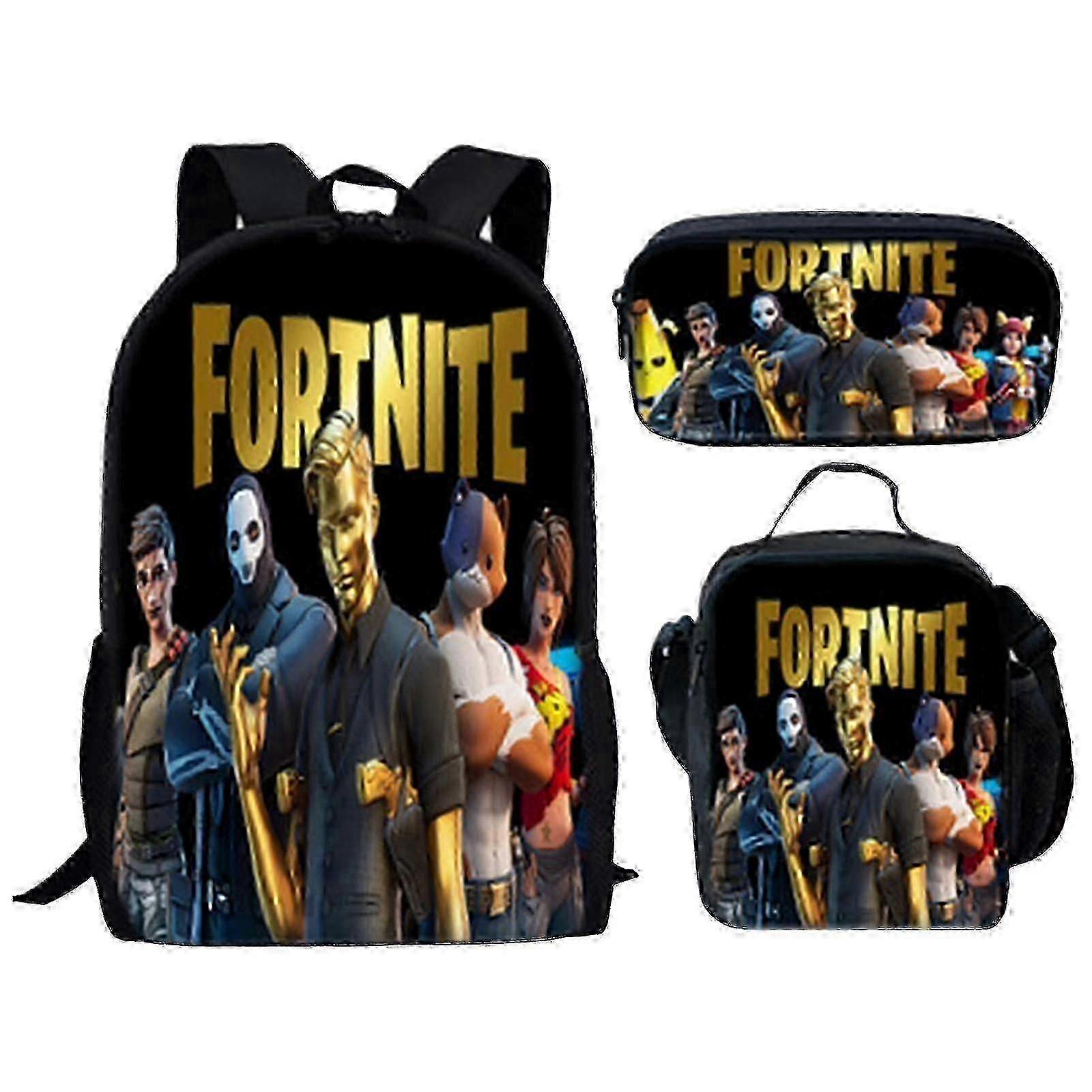 25-26 Three Piece Kids Fortnite School Bag Backpack Lunch Bag Stationery Bag Gifts Backpack Printed Schoolbag D